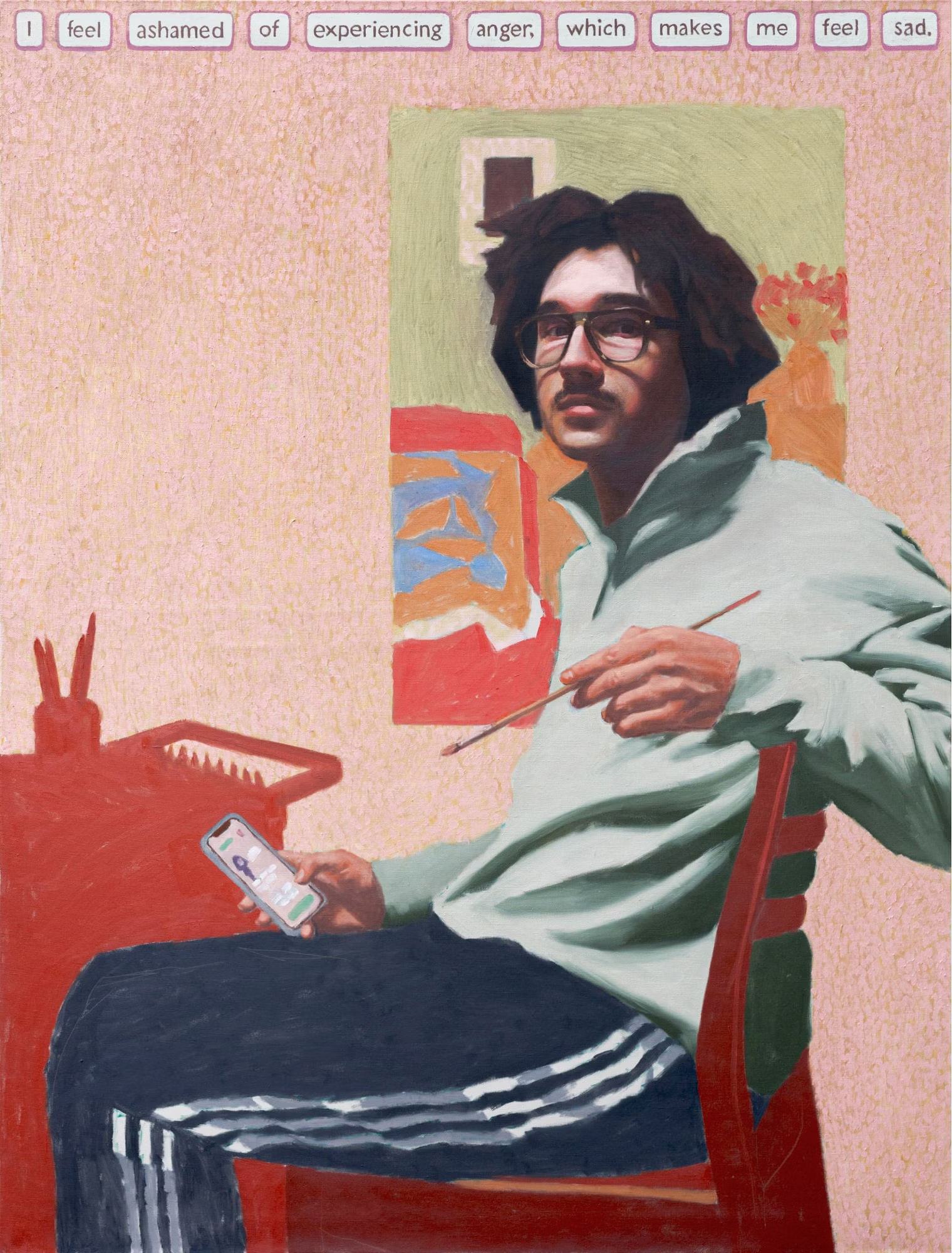 Nie jesteś zupą pomidorową żeby cię wszyscy lubili, 120x120 cm, olej na płotnie, 2024